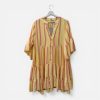 Vestido camisetero de rayas en azul y beige con cuello pico en contraste. Cómodo, ligero y perfecto para el día a día con un toque desenfadado.