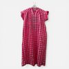 Vestido camisetero de rayas rojas y crudas con mangas remangadas en contraste azul. Cómodo, ligero y perfecto para un look casual con un toque divertido.
